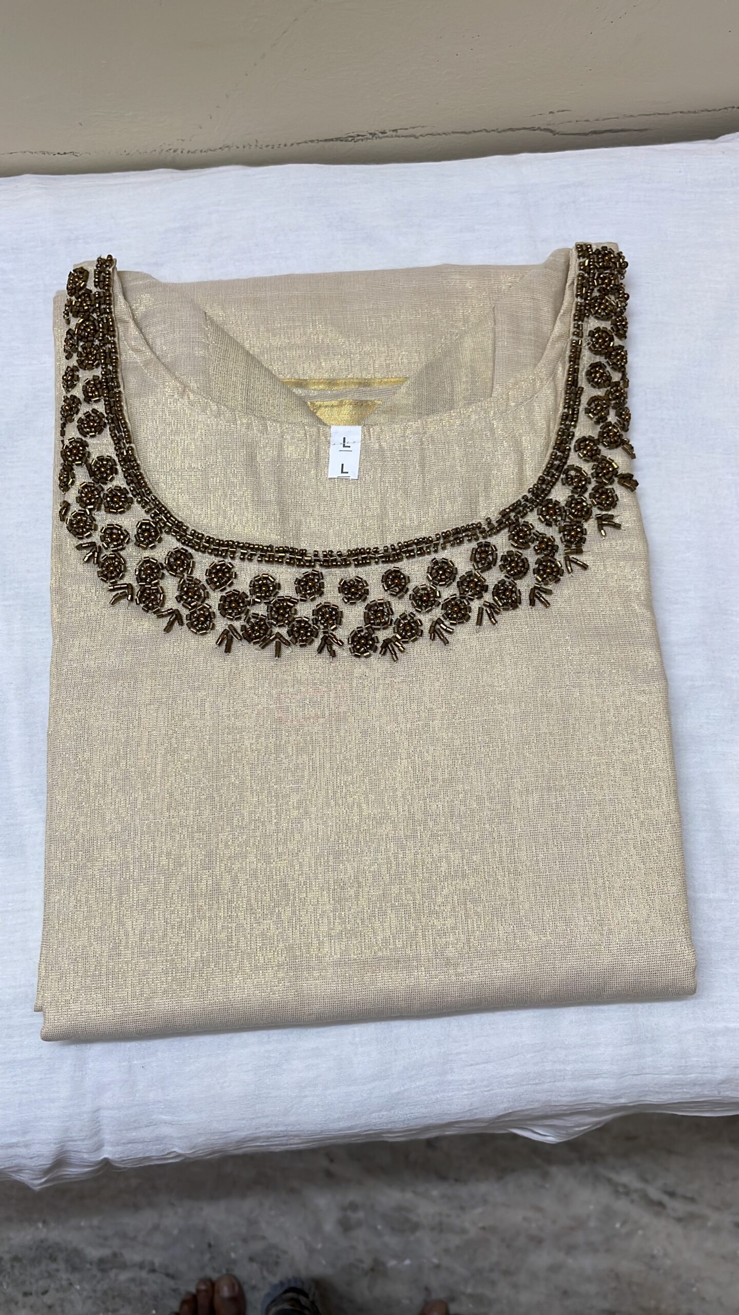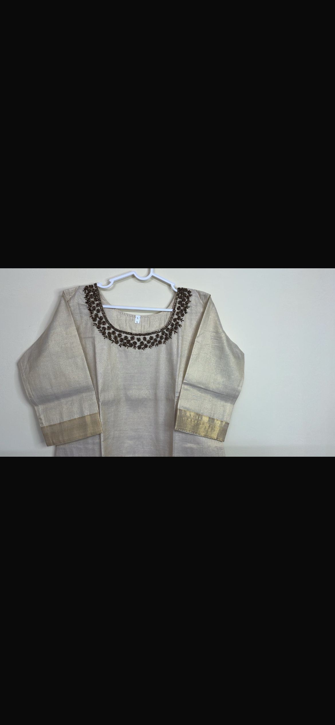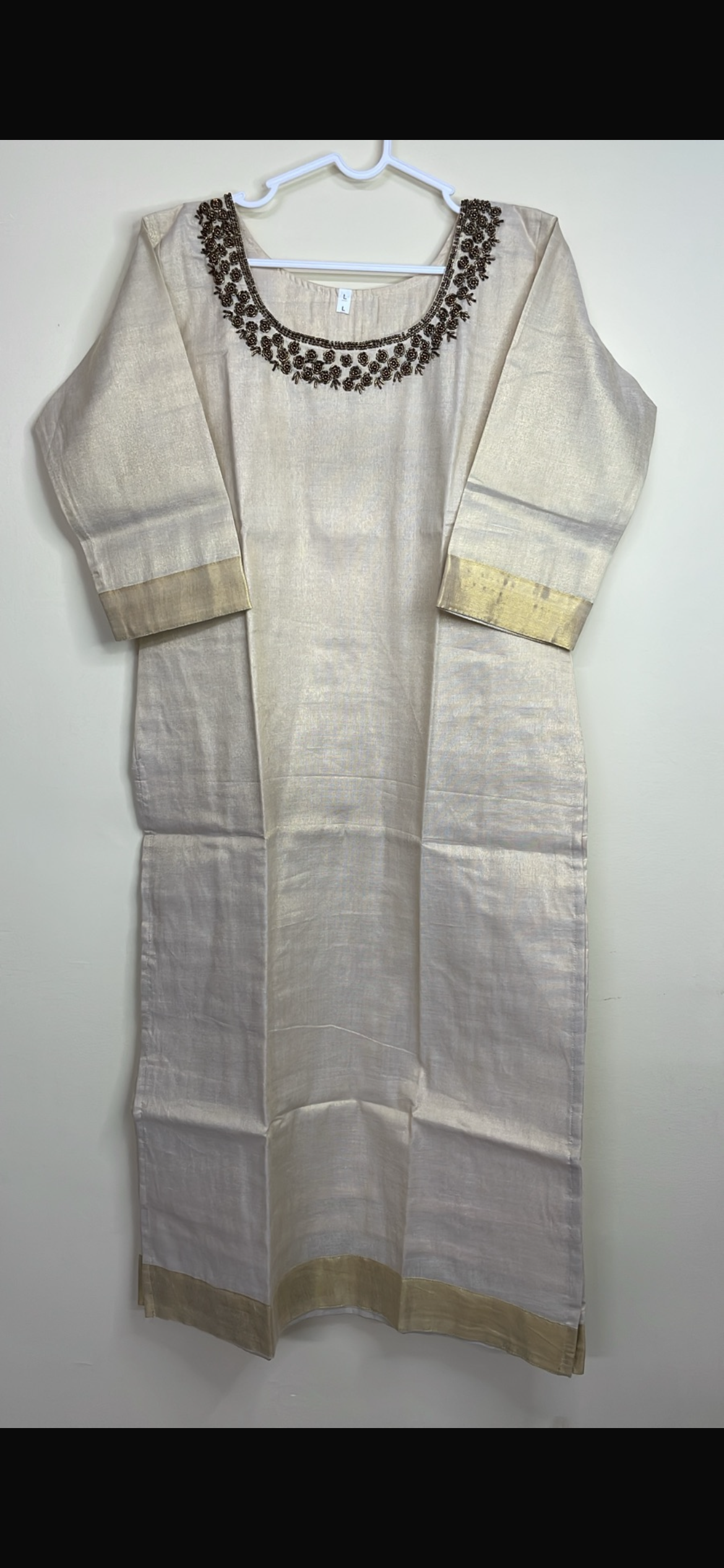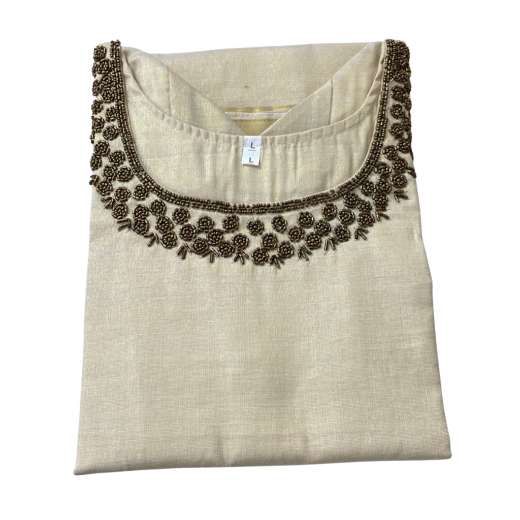 Beige Hand work Kerala cotton side cut kurti